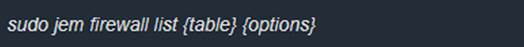- {table} : spécifie la cible iptable (filter, nat, mangle, raw)