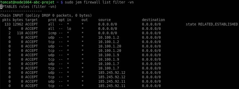 Note : Les modifications effectuées à la variable JELASTIC_PORTS ne sont appliquées qu'une seule fois lors de l'installation des nœuds. Par conséquent, les règles du pare-feu doivent être gérées manuellement.