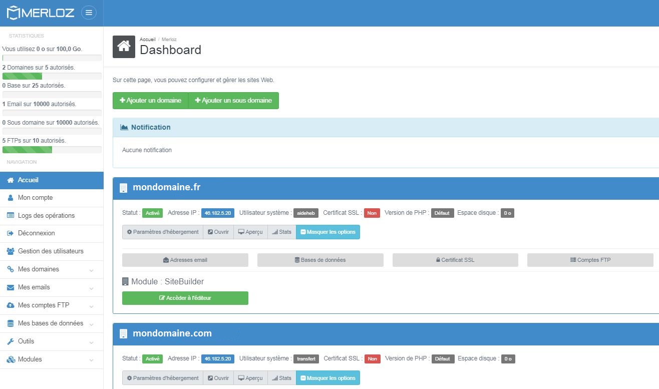 Merloz est un panel de gestion développé par notre équipe de développeurs.