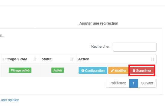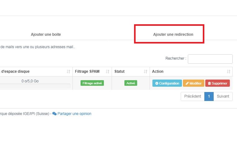 Pour créer une redirection, cliquez sur "Ajouter une redirection email", sélectionnez ensuite l'adresse mail à rediriger et saisissez ensuite l'adresse vers laquelle vous souhaitez rediriger les mails.