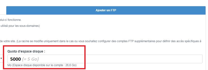 (Attention, si la taille de vos fichiers dépasse la taille du quota fixée, vous aurez une erreur lors du transfert de fichiers par FTP, vous devrez donc augmenter votre quota)
