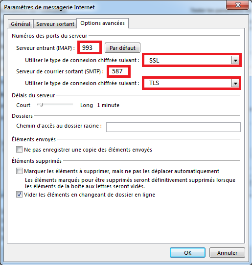 Voici les paramètres à utiliser pour Mozilla ThunderBird :