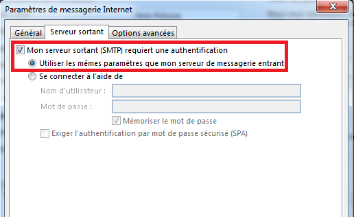 Mot de passe : saisissez le mot de passe que vous avez défini lors de la création de a boîte mail