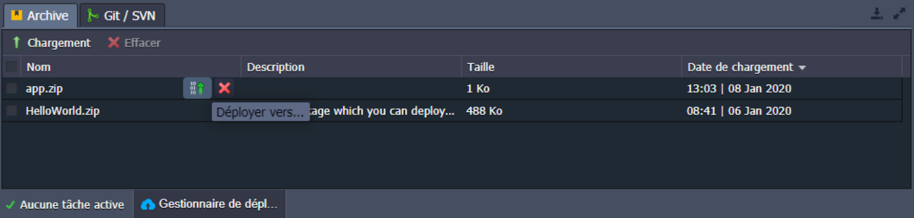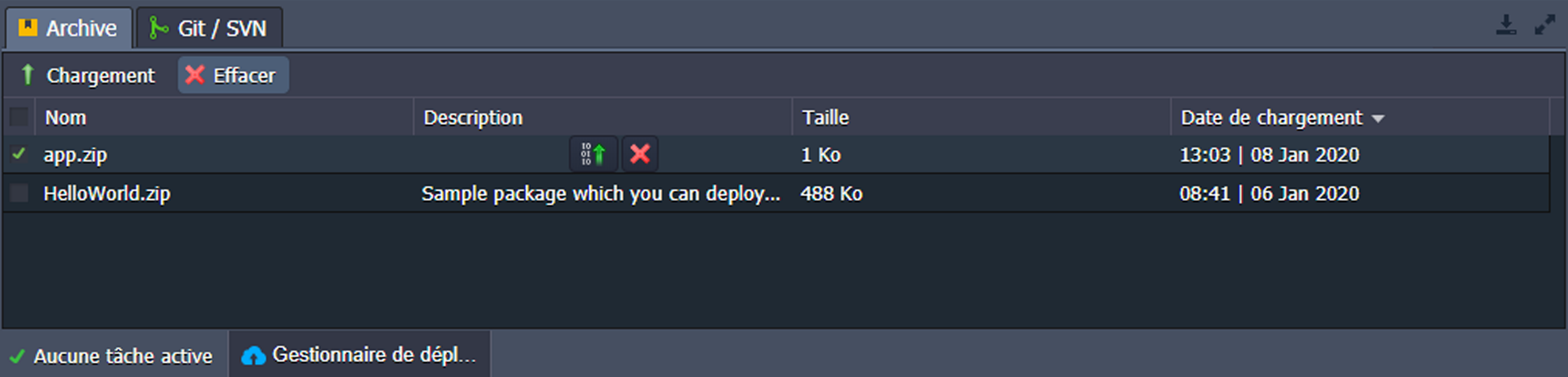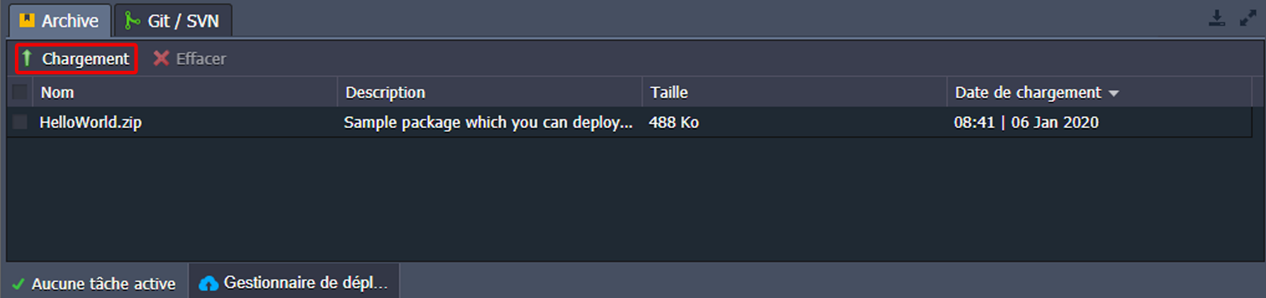 • Date de chargement : date de l'ajout de l'archive dans le Gestionnaire de déploiement