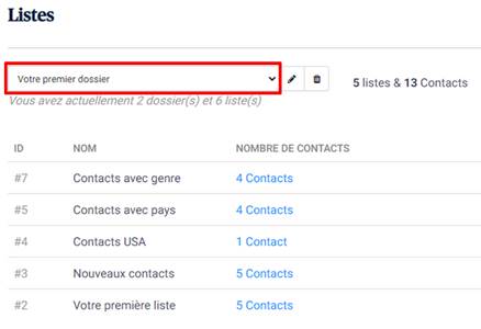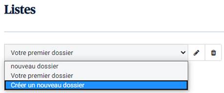 Choisissez un de vos dossiers pour que les listes lui appartenant s’affichent.