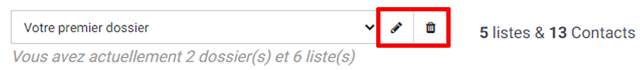 Une fois votre dossier sélectionné, vous pourrez modifier son nom ou le supprimer (cette action supprimera aussi toutes ses listes).