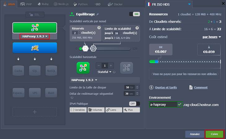 Enfin, saisissez le nom de l'environnement (par exemple a-haproxy) et cliquez sur Créer.