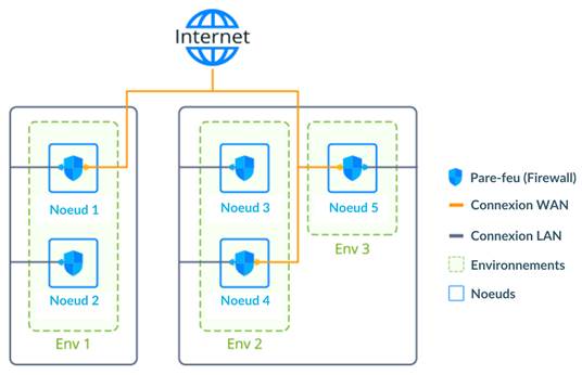 Remarque : De plus, la connectivité des nœuds peut être limitée par les règles de pare-feu du conteneur, qui représentent une solution plus souple, adaptée à la gestion des accès internes et externes.