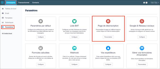 Nous vous recommandons d’utiliser le lien de désinscription intégré à notre plateforme pour que vos contacts qui se désabonnent soient blacklistés automatiquement. Ainsi, ils ne recevront plus vos prochaines campagnes.