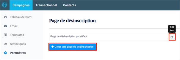 Vous pouvez éditer la page de désinscription par défaut, ou en créer une nouvelle.
