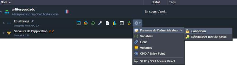 4. Pour gérer votre équilibreur de charge, vous pouvez accéder à son panneau d'administration. Cliquez sur le bouton Autres à côté de la couche, puis Panneau de l’administrateur > Connexion (les informations d'accès sont envoyées par courrier électronique après la création du nœud).