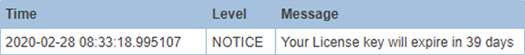 - La notification relative à l'expiration de la clé de licence dans Actions > Server Log Viewer du journal du serveur doit être ignorée car la location est automatiquement gérée par la plateforme.
