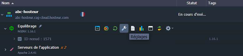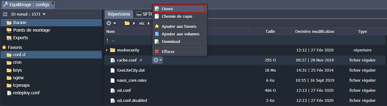 4. Pour configurer le cache, cliquez sur le bouton Réglages pour le nœud NGINX dans votre environnement et naviguez jusqu'à conf.d > cache.conf.