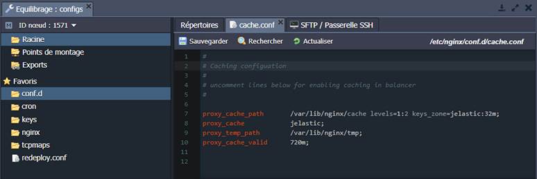 5. Pour activer le cache, décommentez les lignes comme indiqué dans l'image ci-dessous.