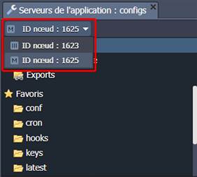 En raison des configurations indiquées dans cet exemple (à savoir l'option « Monter sur tous les nœuds » activée et l'option « Lecture seule » désactivée), le contenu monté devrait être disponible et modifiable dans tous les conteneurs de la couche. Vous pouvez vérifier cela en passant d'un nœud à l'autre à l'aide de la liste déroulante du menu de gauche (encadrée ci-dessous).