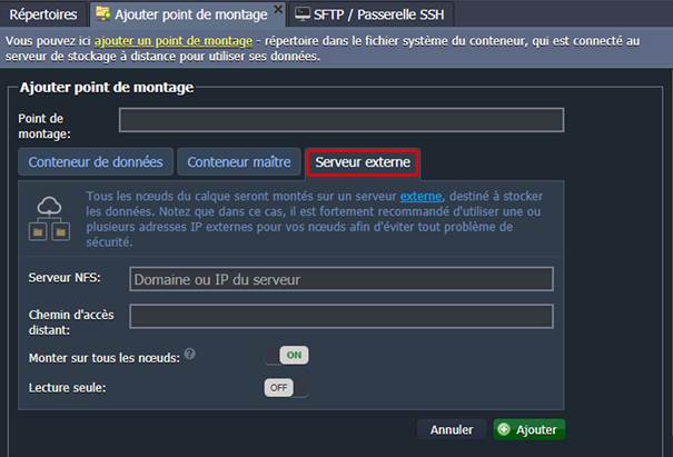 1. Dans la section Ajouter point de montage, passez à l'onglet Serveur externe.