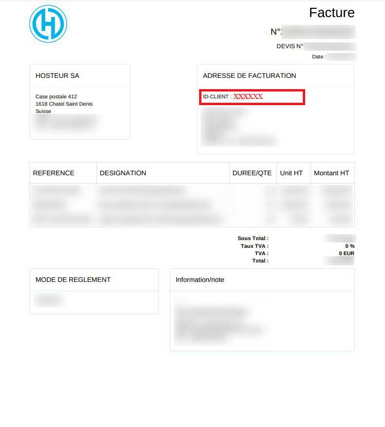 Ou trouver mon numéro de client ? (ID-Hosteur)