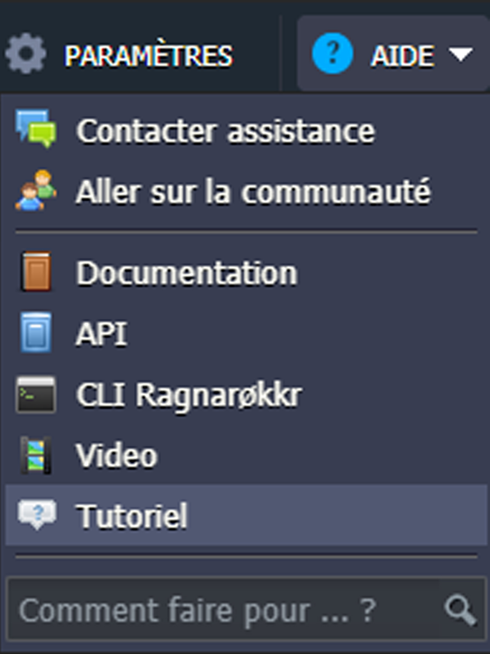 Si nécessaire, ce tutoriel peut être exécuté manuellement à tout moment via le menu Aide > Tutoriel :