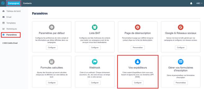 1. Accédez à la page « Vos expéditeurs ».