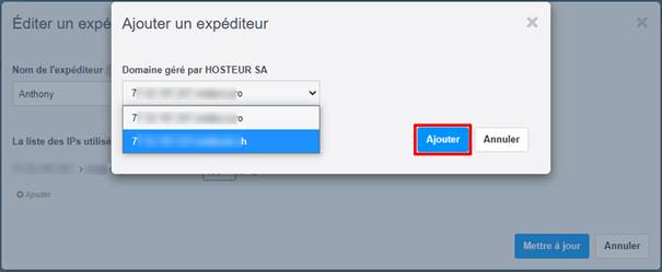 4. Sélectionnez l’IP dédiée que vous voulez ajouter à cet expéditeur et cliquez sur Ajouter.