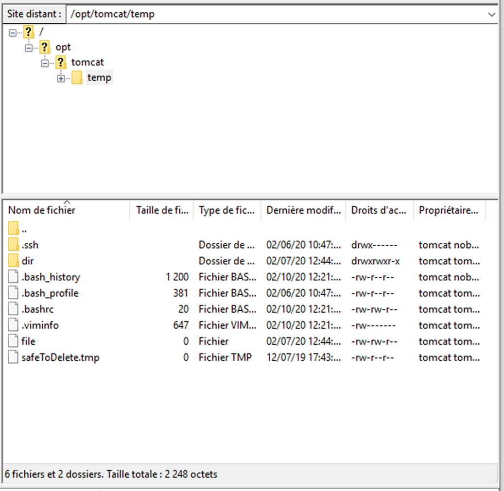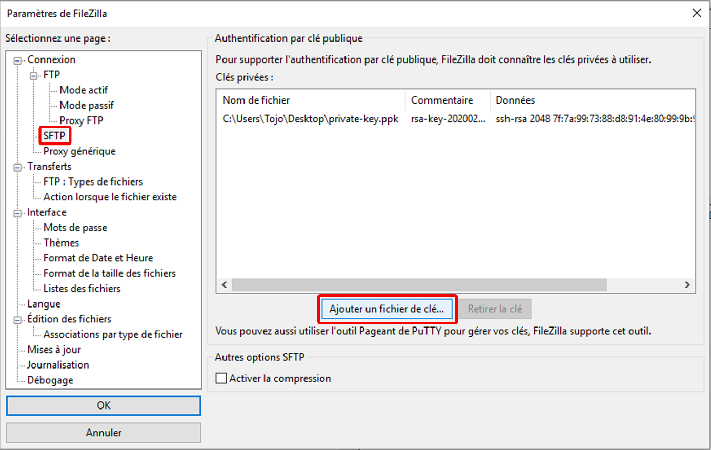 Nous pouvons maintenant procéder à l'établissement de la connexion SFTP.