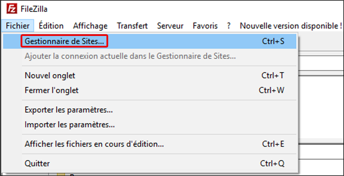 3. Ensuite, naviguez jusqu'à l'élément de menu Fichier > Gestionnaire de sites.