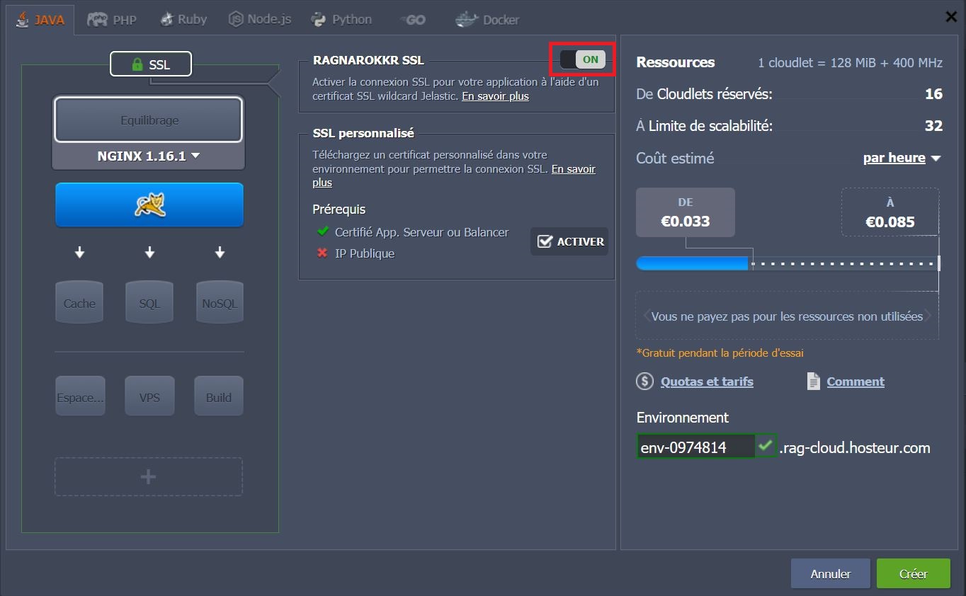 RAGNARØKKR vous donne la possibilité de choisir entre RAGNARØKKR SSL (seul le serveur d'application est requis) et Custom SSL (serveur d'application/NGINX balancer avec une IP publique est requis).