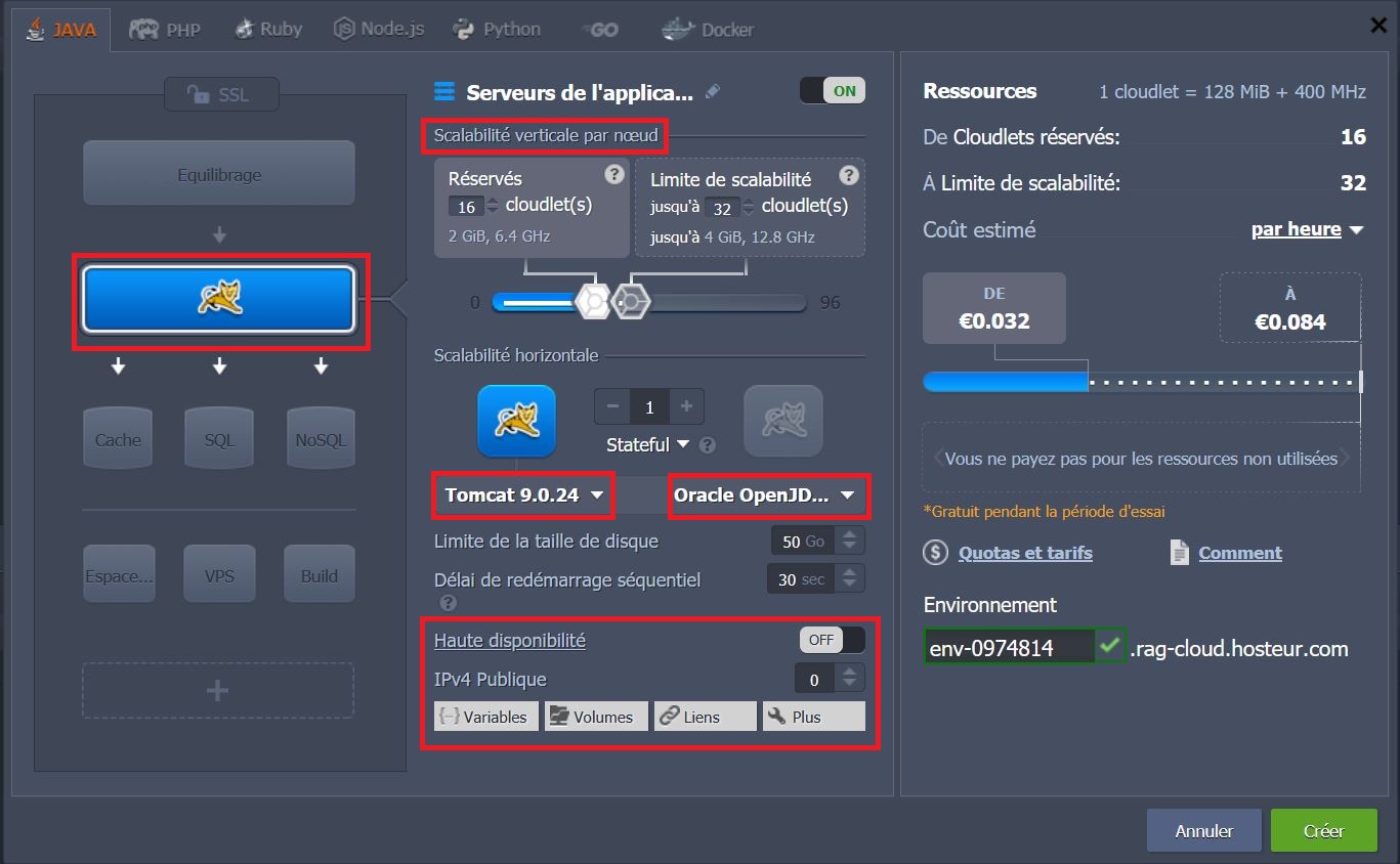 Si vous en avez besoin, vous pouvez activer la Haute Disponibilité pour votre serveur d'applications Java. Vous pouvez également attacher l'adresse IPv4 publique à votre serveur d'application, quel que soit le langage de programmation utilisé (remarque : il s'agit d'un add-on payant).