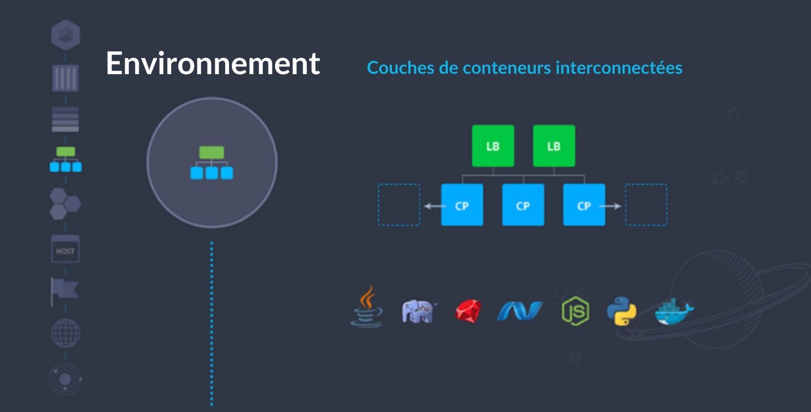 L'environnement est une collection de conteneurs isolés pour l'exécution de services d'application particuliers. RAGNARØKKR fournit des outils intégrés pour une gestion pratique de l'environnement (i.e. configuration, monitoring, dépannage, etc.).