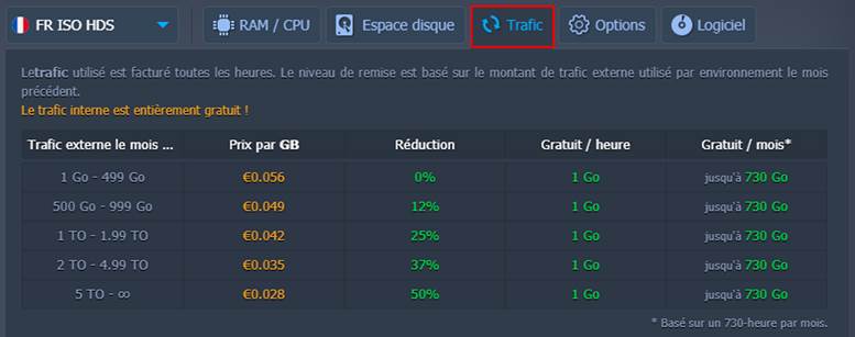 Le trafic interne (trafic entre serveurs au sein de votre environnement, ou entre plusieurs environnements dans RAGNARØKKR) est entièrement gratuit !