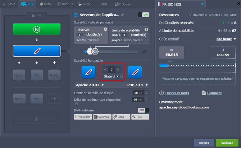 7. Enfin, vous pouvez faire évoluer votre environnement horizontalement en ajoutant le nombre de serveurs nécessaires.