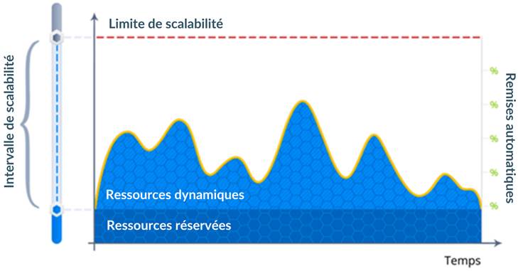 Avec la scalabilité automatique, vous n'avez pas besoin de deviner ou de prévoir la charge entrante. La plateforme ajustera automatiquement le montant alloué aux ressources de l'environnement (dans les limites de la scalabilité possible indiquée) en fonction de ses besoins actuels.