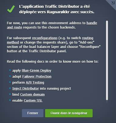 - Environnement : nom de domaine pour votre environnement (par exemple, traffic-distributor)