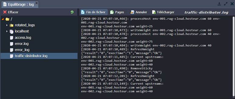 Ainsi, en suivant les étapes décrites, vous pouvez appliquer les modifications apportées au Traffic Distributor et les suivre facilement grâce aux journaux.