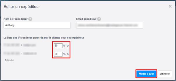Vous pouvez mettre 75% pour l’une et 25% pour l’autre (75% des envois se feront depuis la première IP et 25% depuis la deuxième). Ceci est pratique si l’une des IP est encore fraîche et nécessite encore un préchauffage.